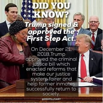 Trump unterzeichnete und genehmigte den 1.Schritt Gesetz. Am 21. Dezember 2018 genehmigte Trump das Strafrechtsgesetz, das Reformen verabschiedete, die unser Justizsystem gerechter machen und ehemaligen Insassen helfen, erfolgreich in die Gesellschaft zurückzukehren