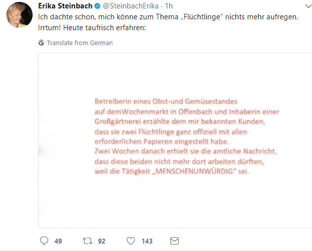 Quelle: Erika Steinbach via Twitter vom 08.10.2017