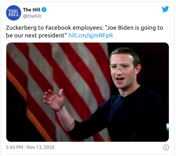 „Zuckerberg an Facebook-Mitarbeiter: „Joe Biden wird unser nächster Präsident sein““
