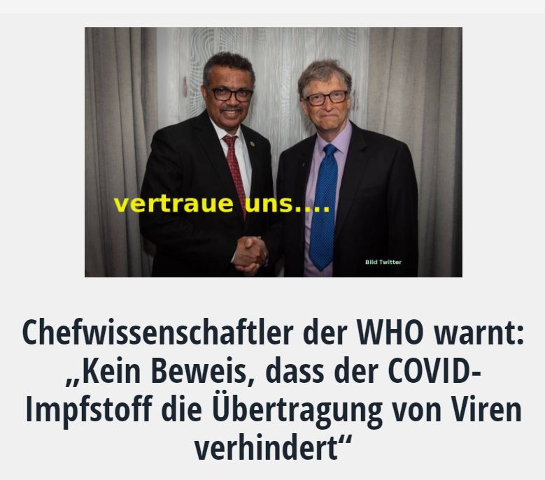 Wieder einmal hat die WHO es fertig gebracht, einige verwirrende Kommentare über den Coronavirus-Impfstoff zu verbreiten. Eine Warnung, dass es „keine Beweise gibt um sicher zu sein das die Impfung die Übertragung verhindern“ und dass Menschen, die den Impfstoff erhalten haben, weiterhin Masken tragen sollen und sich an alle sozialen Distanzierung und Reise-Richtlinien halten sollen.