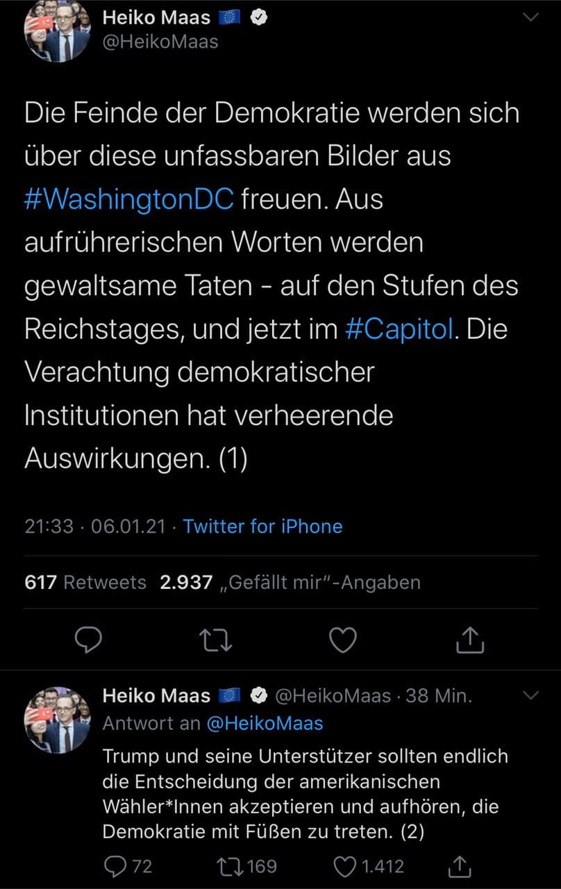 „In dieser Stunde steht unsere Demokratie unter einem noch nie dagewesenen Angriff, wie wir ihn in der Neuzeit noch nie erlebt haben.“ (B911)