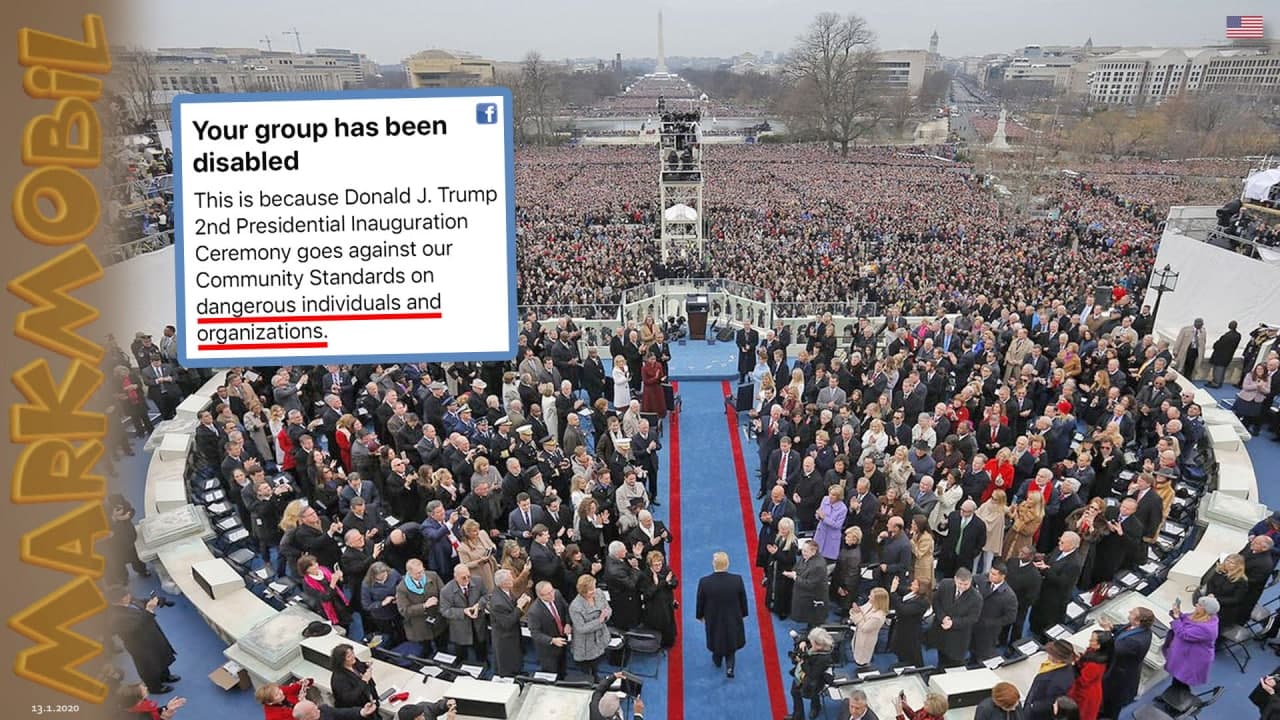 Die Bevölkerung in den USA, die DONALD TRUMP gewählt hat, will für ihn eine eigene ZWEITE AMTSEINFÜHRUNG organisieren, parallel zu JOE BIDENs Amtseinführung. Eine entsprechende Facebookgruppe hatte innerhalb kürzester Zeit 300.000 Mitglieder. Aber Facebook hat die Gruppe gelöscht. Begründung: Sie verstößt gegen die „Communityrichtlinien für gefährliche Personen und Organisationen“.