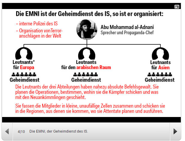 Der Ex-Jihadist Harry Sarfo schildert, wie die Terrormiliz Islamischer Staat (IS) Anschläge in Europa koordiniert. Noch immer reisen viele radikalisierte Islamisten nach Syrien, …… doch dort herrscht offenbar kein Mangel an Kämpfern.Die EMNI, der Geheimdienst des IS.«Clean men» stehen in der Regel nicht im Fadenkreuz der Nachrichtendienste.«Unmenschlich» und «unislamisch»: Harry Sarfo, Ex-Jihadist aus Deutschland, trägt in einem Propaganda-Video eine IS-Flagge.Harry Sarfo erzählt im Fernsehen, wie seine Zeit beim IS in Syrien war.Nach seiner Rückkehr nach Deutschland wurde Harry Sarfo verhaftet und zu drei Jahren Gefängnis veruteilt.IS-Sprecher Abu Muhammad al-Adnani soll die Anschläge im Ausland koordinieren.