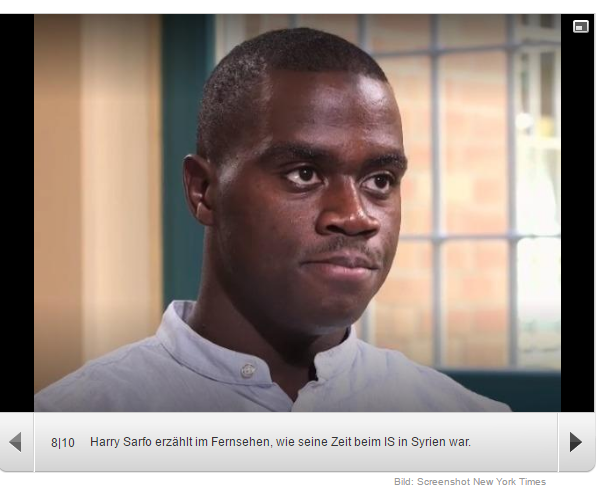 Drei Monate war Sarfo beim IS. Die Hinrichtungen und das brutale Vorgehen des IS desillusionierten ihn, sagt Sarfo im Interview mit der New York Times. Deshalb sei er über die türkische Grenzen geflohen und nach Deutschland zurückgeflogen, wo er verhaftet wurde. Wegen der Mitgliedschaft in einer terroristischen Vereinigung wurde er zu drei Jahren Haft verurteilt.