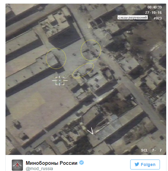 Man werfe der russischen Luftwaffe „wahllose Angriffe“ vor, sagte General Sergej Rudskoj, Chef der Operativen Verwaltung im russischen Generalstab, am Freitag in Moskau. „Weil die russische und die syrische Luftwaffe bereits seit zehn Tagen nicht mehr nach Aleppo fliegen, werden russische Angriffe in anderen Teilen Syriens ‚fabriziert.“ Ein Beispiel dafür sei die medial weit verbreitete Tragödie in einer Schule in Idlib.