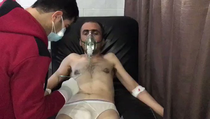 Von der syrischen Medienagentur veröffentlichtes Bild eines Patienten, der vermeintlich Opfer eines Angriffs nahe Afrin mit giftigem Gas wurde.